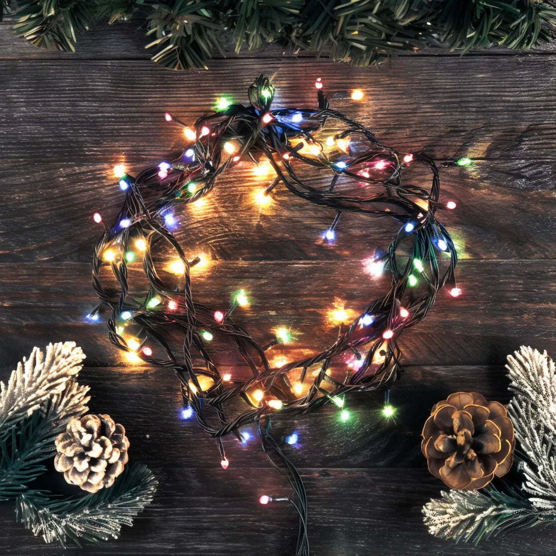Creează o atmosferă festivă instant cu această instalaţie multicoloră de 12 metri cu 200 de LED-uri. Ideală pentru bradul de Crăciun, grădină, terasă sau vitrină – utilizabilă interior şi exterior.