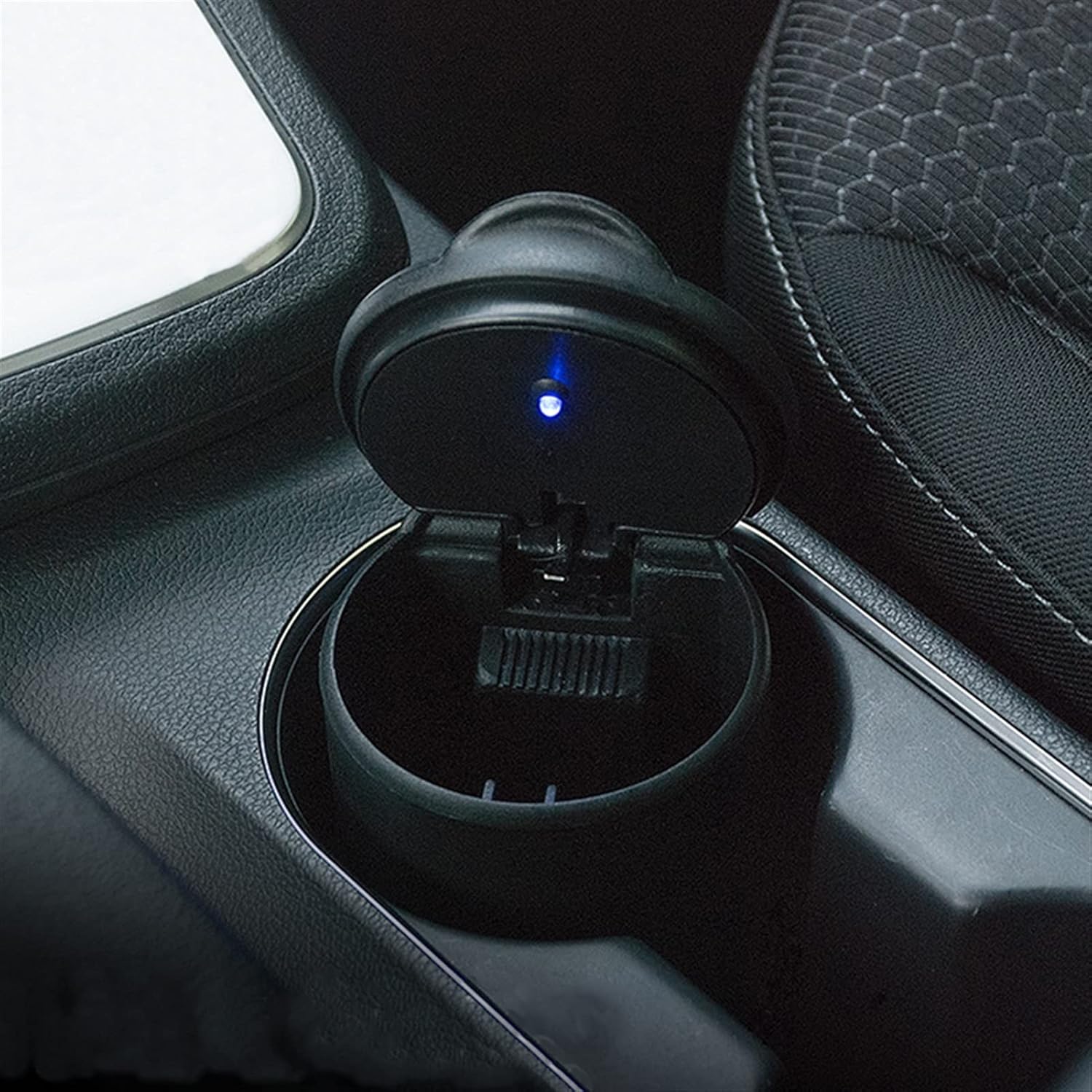Scrumieră Auto cu LED Albastru, Capac Antimiros, Universală, Potrivită pentru Suportul de Pahare
