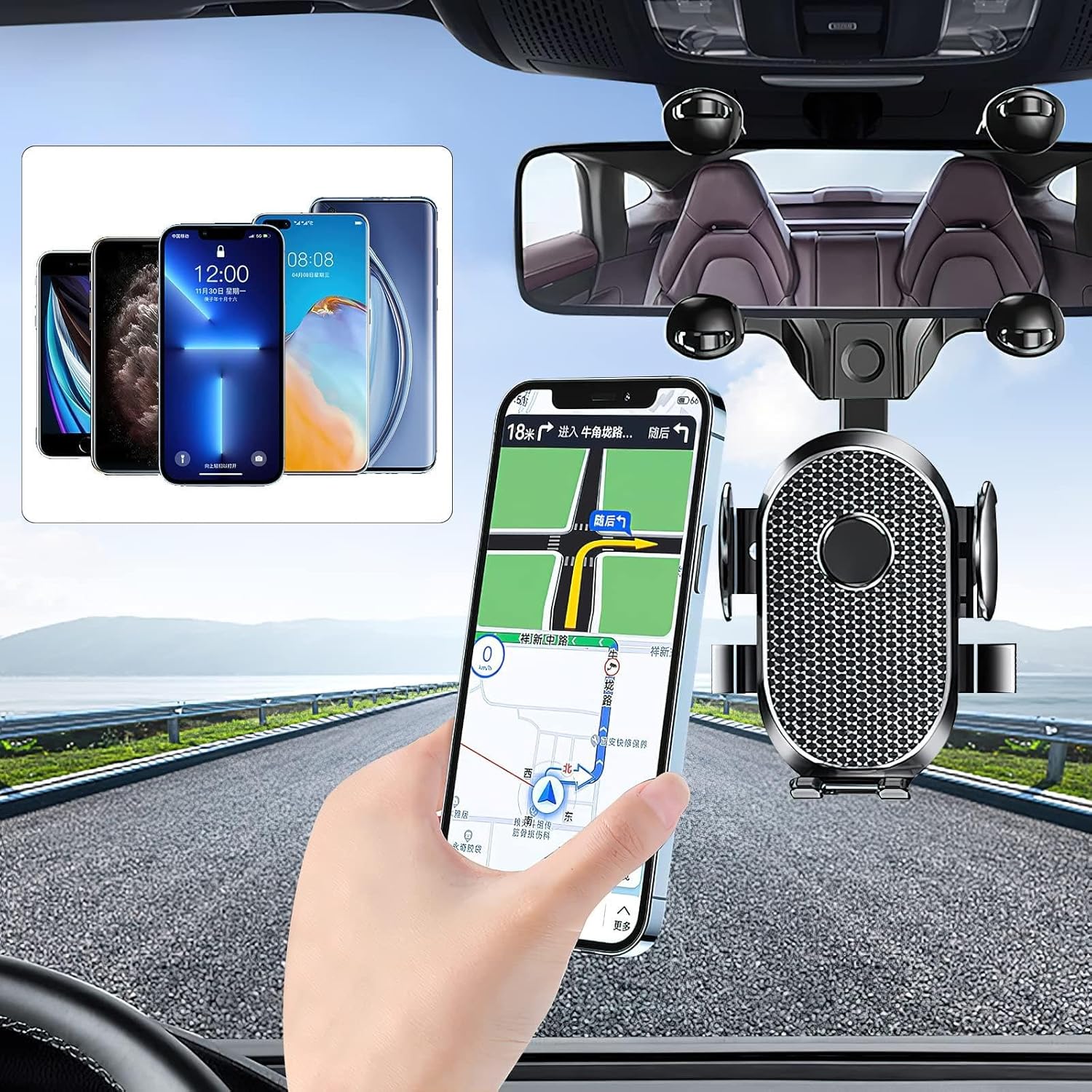 Suport auto pentru telefon – montaj pe oglinda retrovizoare, rotire 360°, compatibil universal, design stabil și compact