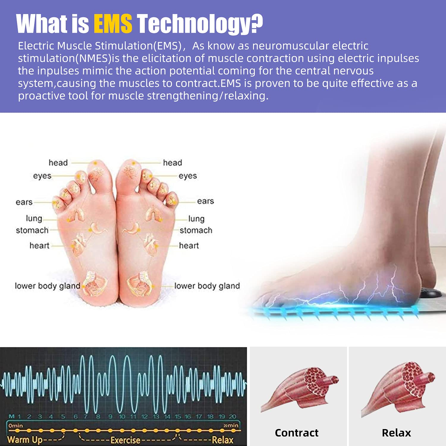 Electrostimularea musculară (EMS) este o tehnologie folosită în sport și recuperare medicală, ce determină contracția și relaxarea mușchilor prin impulsuri electrice ușoare. Perfectă pentru utilizare zilnică, inclusiv în momentele petrecute la birou, în poziție așezată.